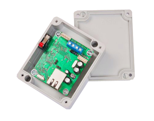 Призначений для забезпечення зв'язку ППКО «Кронос-8» із пультом централізованого спостереження через локальну мережу за технологією Ethernet стандарту 10Base-T або 100Base-T (підключення по кабелю з витими парами через роз'єм RJ-45). Підтримує протокол TCP у зв'язку з сервером. Можливе використання двох IP адрес сервера ПЦС. Підключення до приладу через шину RS485. Є індикація несправності. Напруга живлення - 9 ... 15В. Середній струм споживання не більше 65 мА. Можливі виконання модему, призначені для встановлення у базовий корпус (з підключенням шлейфу через роз'єм) або для віддаленої установки у пластиковий корпус Z-54 (з підключенням через клеми). Габаритні розміри плати – 64*53*20мм. Габаритні розміри корпусу Z-54 – 90*75*41мм.