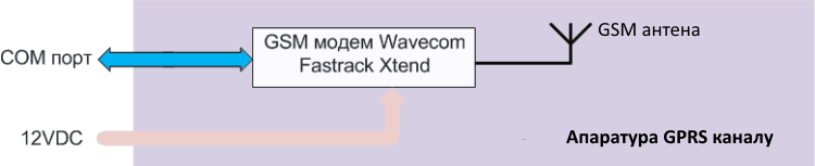 У ретрансляторі, через COM порт, встановлюється стандартний модем GSM і здійснюється підключення до мобільного Інтернету з виділенням статичної IP адреси. Рекомендується використання модему GSM типу Fastrack Xtend. ПЦС має бути підключений до Інтернету і йому має бути виділена статична IP адреса.